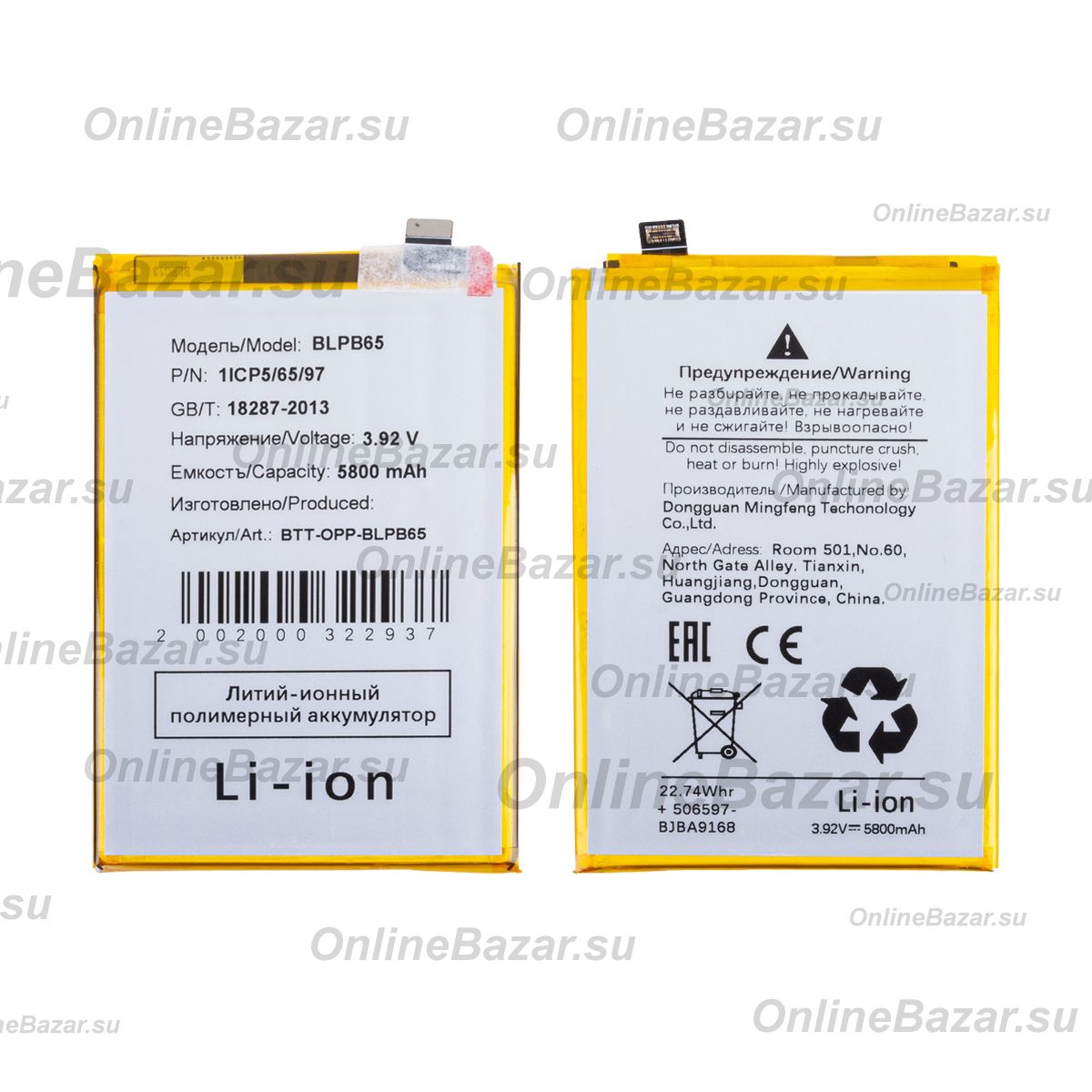 Емкость: 5800 mAh