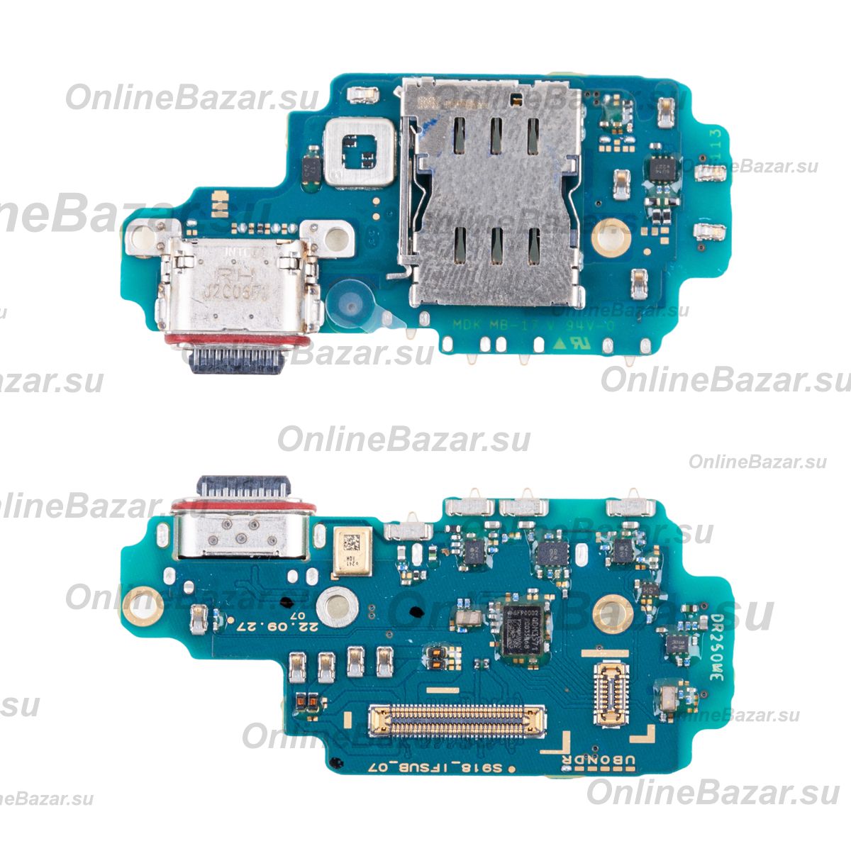 Плата нижняя для Samsung SM-S918E (Galaxy S23 Ultra) (Европейский рынок!!!) на системный разъем, разъем Sim-карты и микрофон (оригинал)